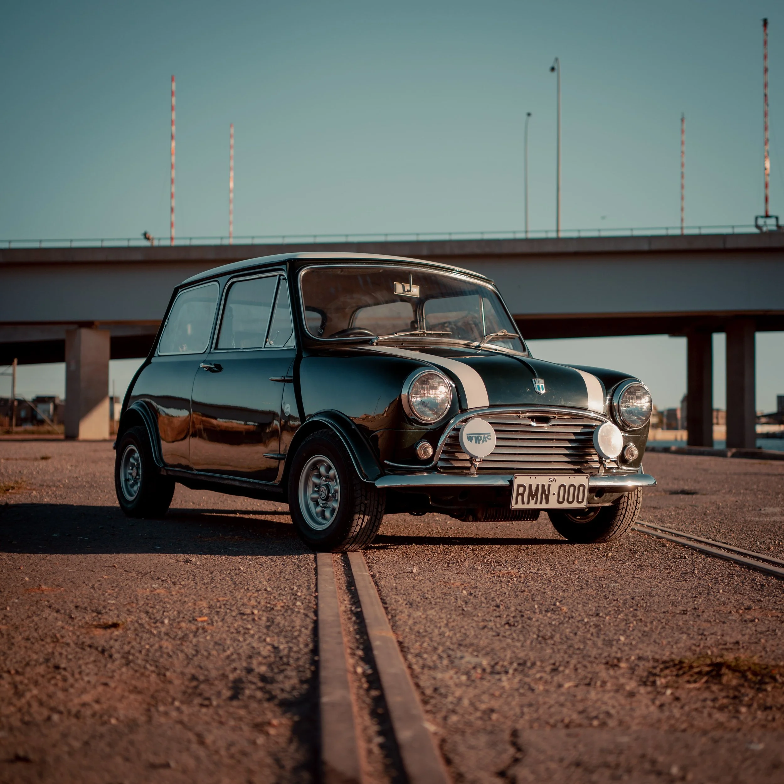 My neighbour bought a classic Morris Mini Cooper 1100 and asked if I could photograph his car. So, on a nice sunny weekend, we both decided to grab an afternoon coffee and go for a drive to scout different locations to take some photos. There is an interesting looking dock where a lot of photographers take car photos, so we decided to go there first. It was nearly Golden Hour, and the light was warm, soft and beautiful. Perfect time for photography!