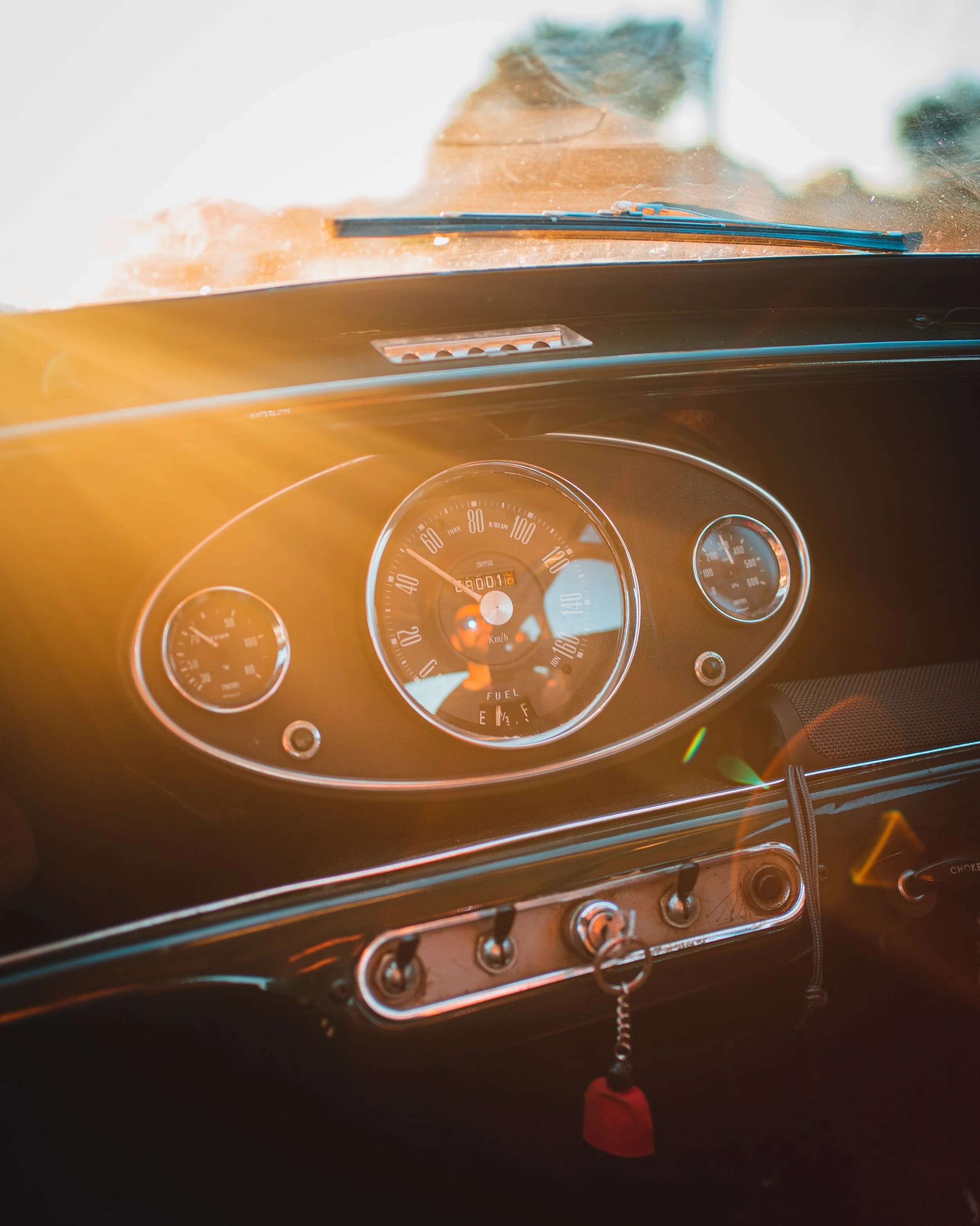 Finally, as the sun was setting and we were running out of light in the suburbs, we decided to chase the sun and head towards the beach. The light here was glorious and soft. So, I whipped out the camera and started shooting. However, I realized that I didn’t take any shots of the interior, which in this car looks very nice. The vintage feel of the car and interior really melded well with the warm summer vibe of the beach. The sun rays entering the car interior just added so much character to the shots that I think out of the whole day, the interior shots were my favorite!